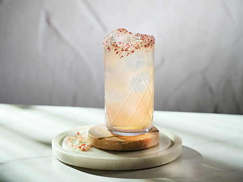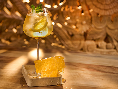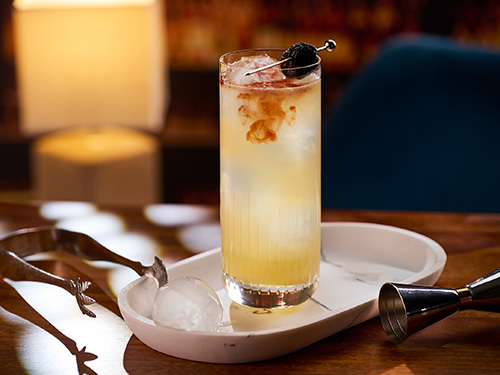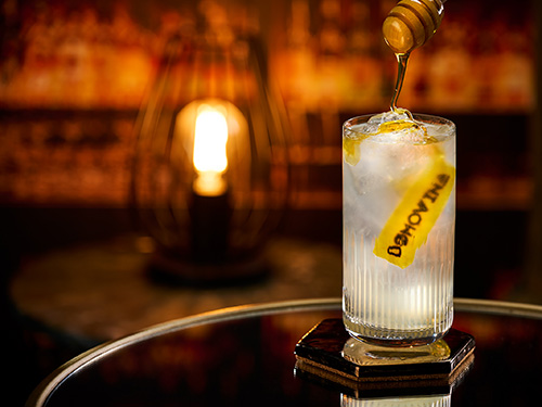 4 cl DOMOVINA Hruškovica Conference, 1,5 cl Med/Medová voda, 1,5 cl citrónová šťava, doliať sódou, 3 streky Angostura Bitters