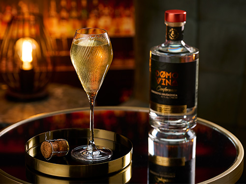 3 cl DOMOVINA BITTER, 1,5 cl GIFFARD Bazový Sirup, 10 cl suchý sekt, 5 cl sóda