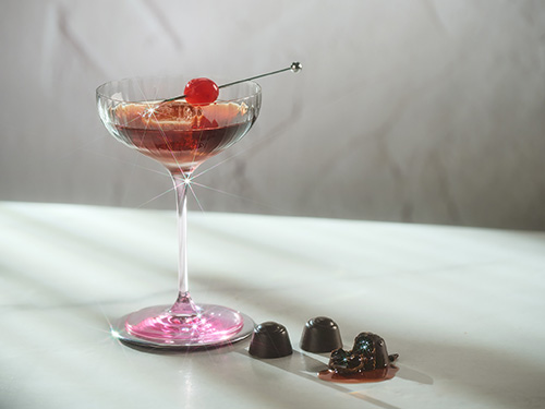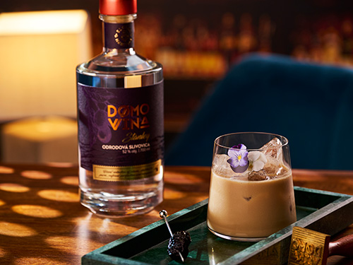 5 cl DMVN slivovica, 1,5 cl Giffard Cassis de Bourgogne likér, 4 streky Angostura Cacao Bitter